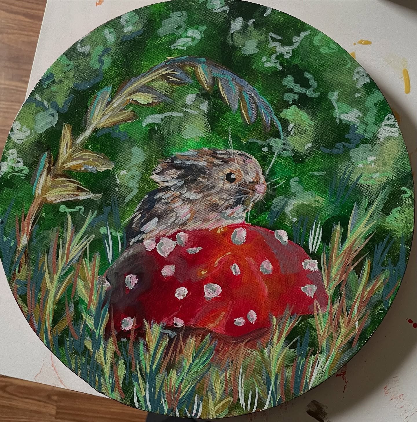 "Enchanted Mushroom and Bunny" 12"x12" Painting