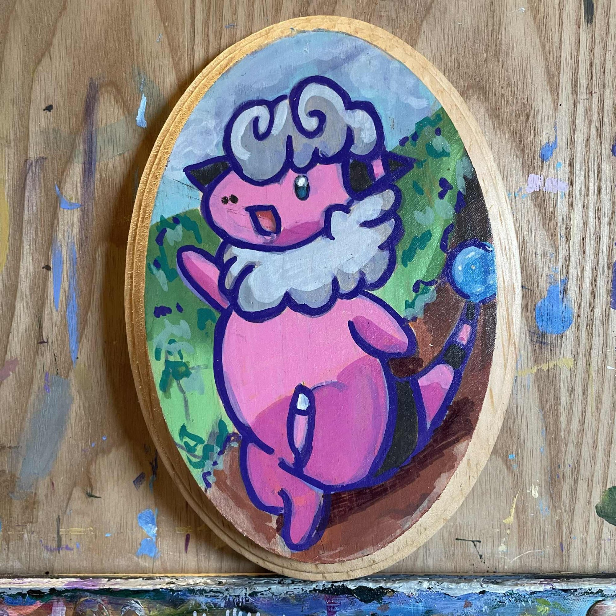 Original hand-painted with acrylic markers. Varnished with a gloss (surface-level scratch-proof). Painting on a wooden plaque.