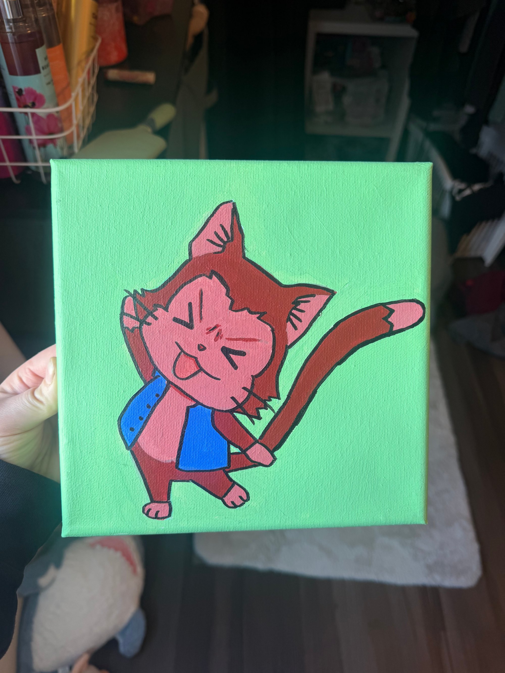 Original painting. Painted with acrylic paint, and then a gloss top coat was applied. The painting is 8”x8” on canvas.