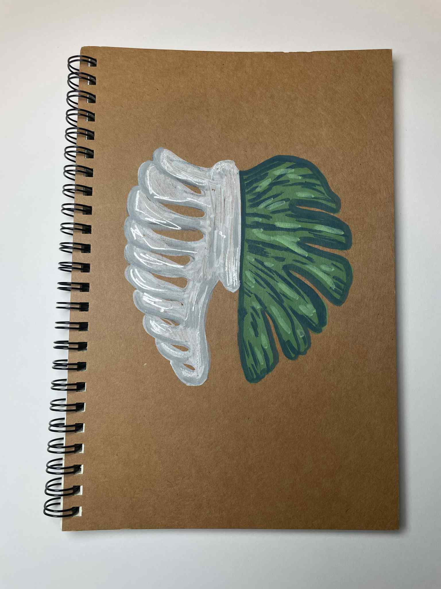 Hand-painted with acrylic markers. The journal itself is a blank sketchbook. It is an A5 / 8.3"X5.5" dimension. Contains 100 pages/50 sheets.