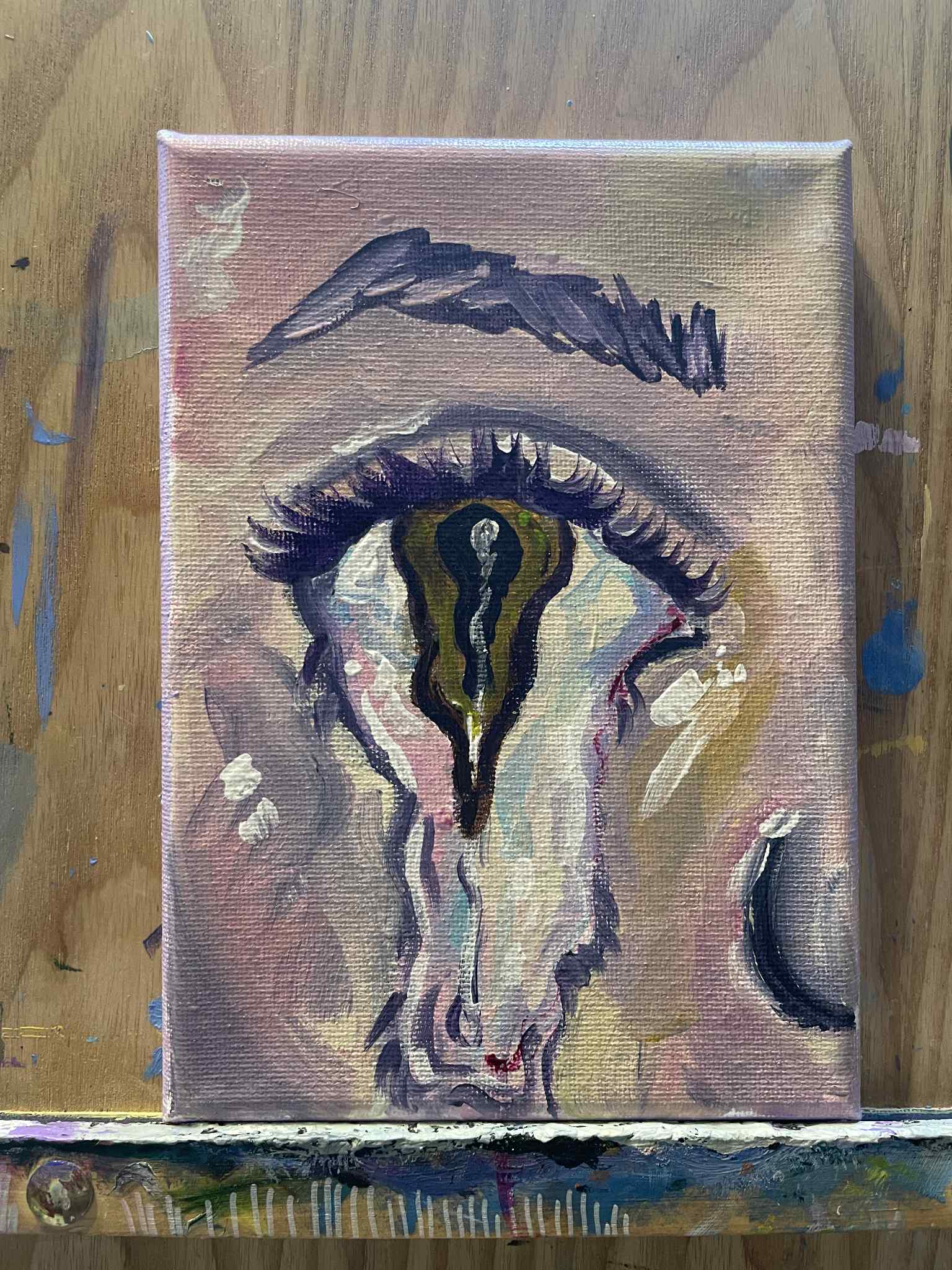 Original painting. Painted with acrylic paint, and then a gloss top coat was applied. The painting is 5" x7" on canvas.