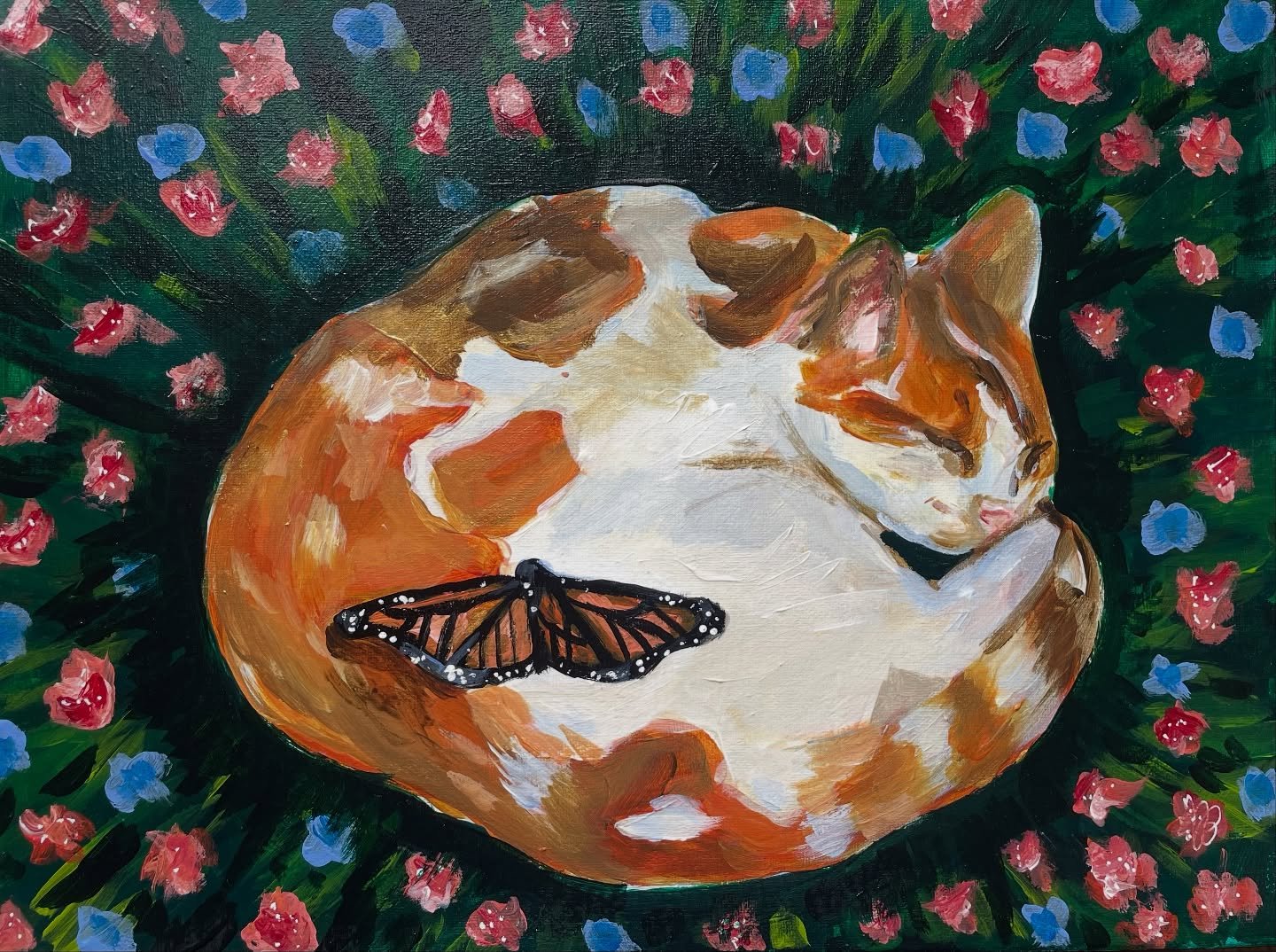 "Sleeping Calico and Her Friend" 12"x16" Painted