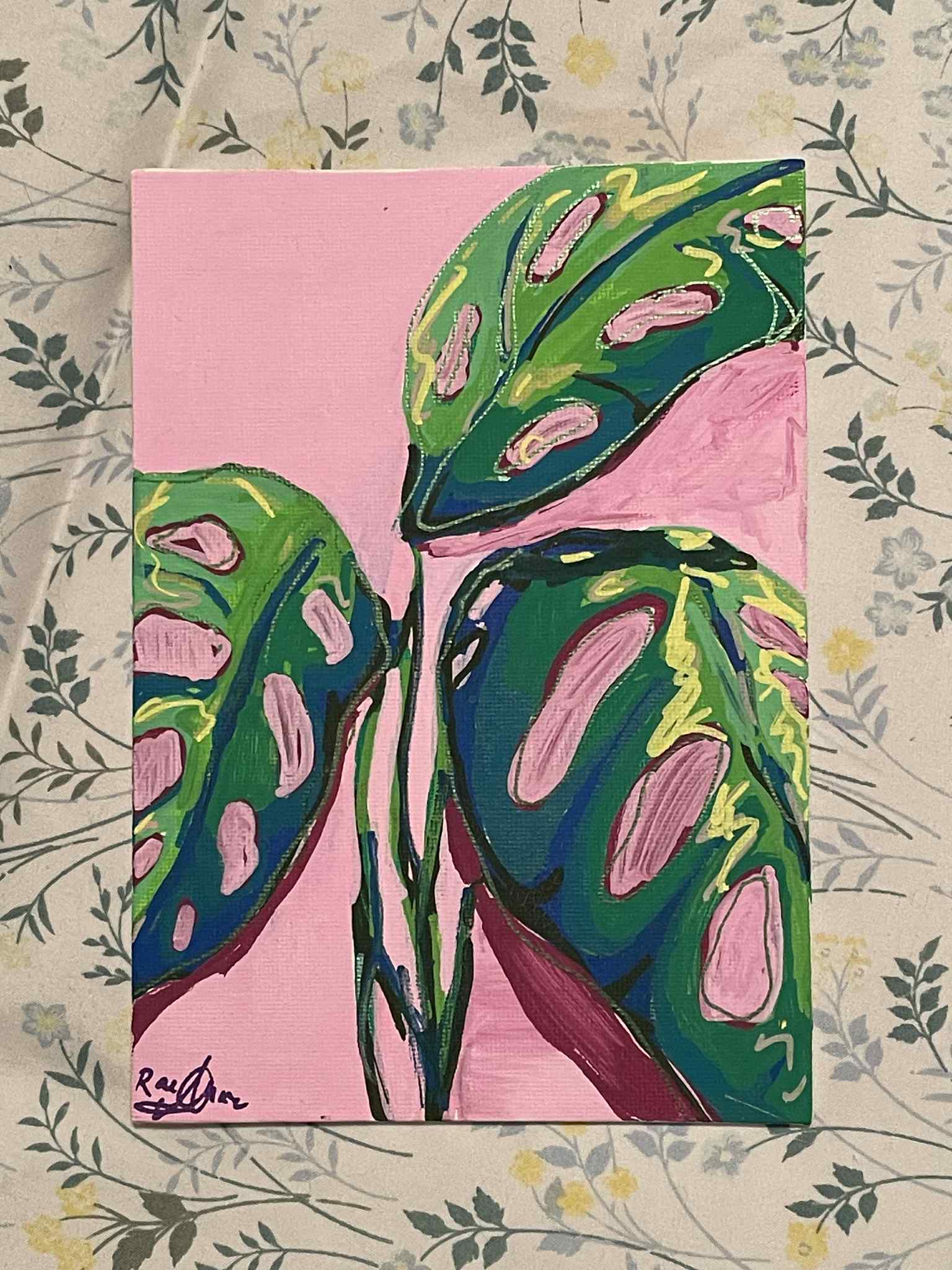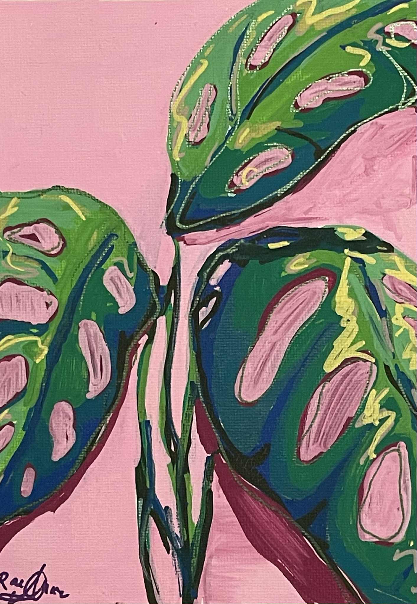 "Swiss Cheese Monstera Study" 5"x7" Painting